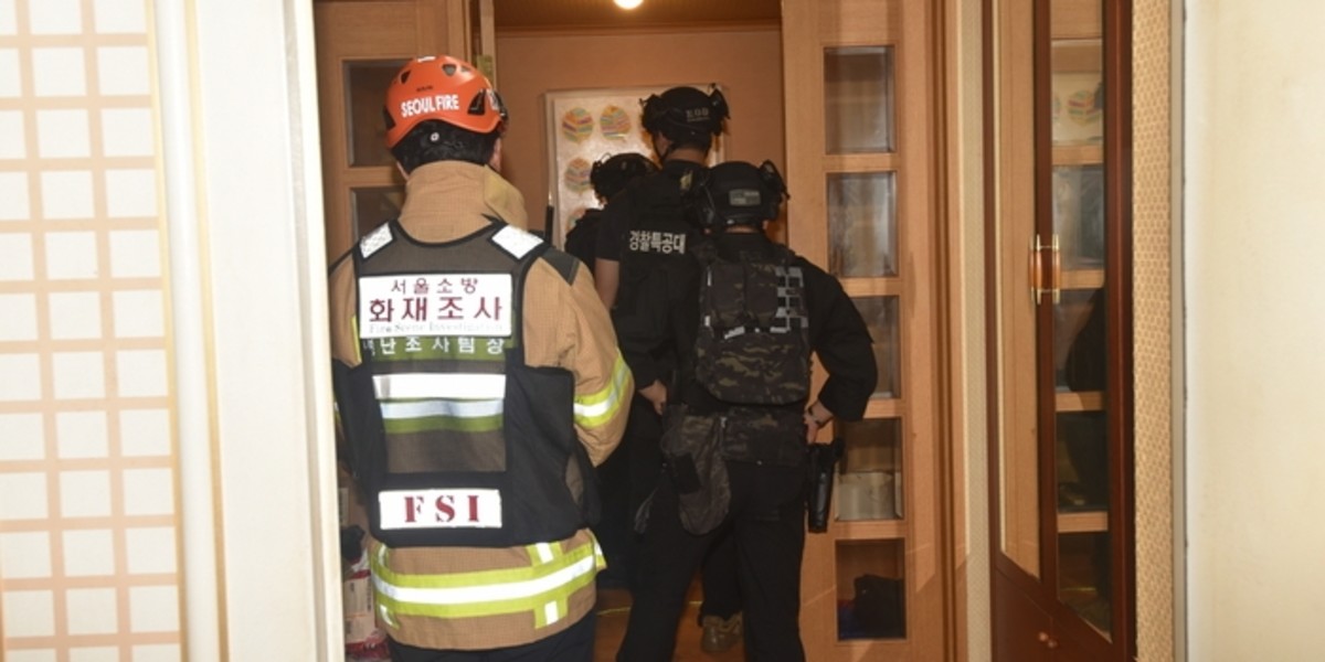 지난 21일 소방 관계자들이 송도 총격 피의자 A 씨(63)의 서울 도봉구 쌍문동 주택에 진입하고 있다 / 서울소방재난본부
