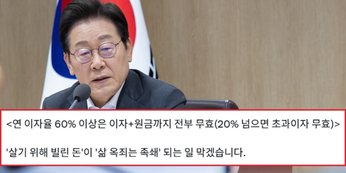 이 대통령은 '내주부터 연 60% 초고금리·협박 통한 불법대부계약 전부 무효'라는 제목의 지난 15일자 기사를 공유하며 불법 대부계약으로 인한 국민 피해 방지에 대한 확고한 입장을 밝혔습니다.
