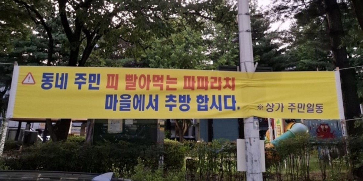 A씨가 공개한 사진에 상가 주민일동은 "동네 주민 피 빨아먹는 파파라치 마을에서 추방합시다"라는 문구가 적힌 현수막을 내걸었는데요.
