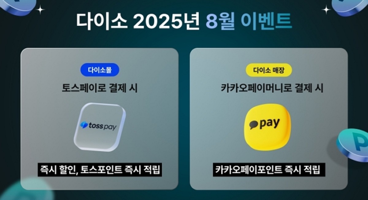 1일 다이소 측은 토스페이와 카카오페이 결제 시 다양한 할인과 적립 혜택을 제공하는 '2025년 8월 이벤트'를 실시한다고 발표했는데요.