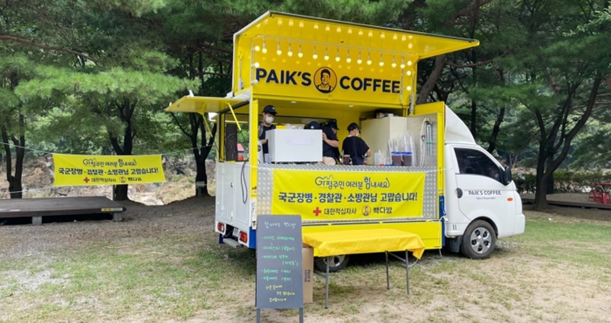 백종원의 더본코리아, 가평군 수해 복구 현장에 '빽다방' 커피트럭 지원