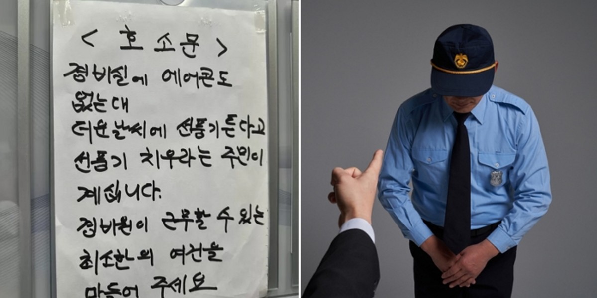 이 호소문에는 '경비실에 에어컨도 없는데, 더운 날씨에 선풍기 튼다고 선풍기 치우라는 주민이 있다. 경비원이 근무할 수 있는 최소한의 여건을 만들어달라'는 내용이 담겨 있었습니다.