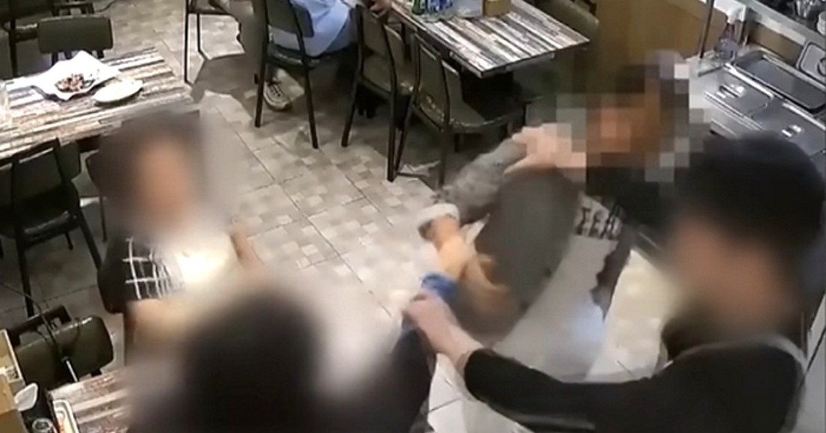 공개된 영상에는 지난달 20일 광주광역시의 한 치킨집에서 벌어진 예상치 못한 폭행 장면이 담겨 있었습니다.