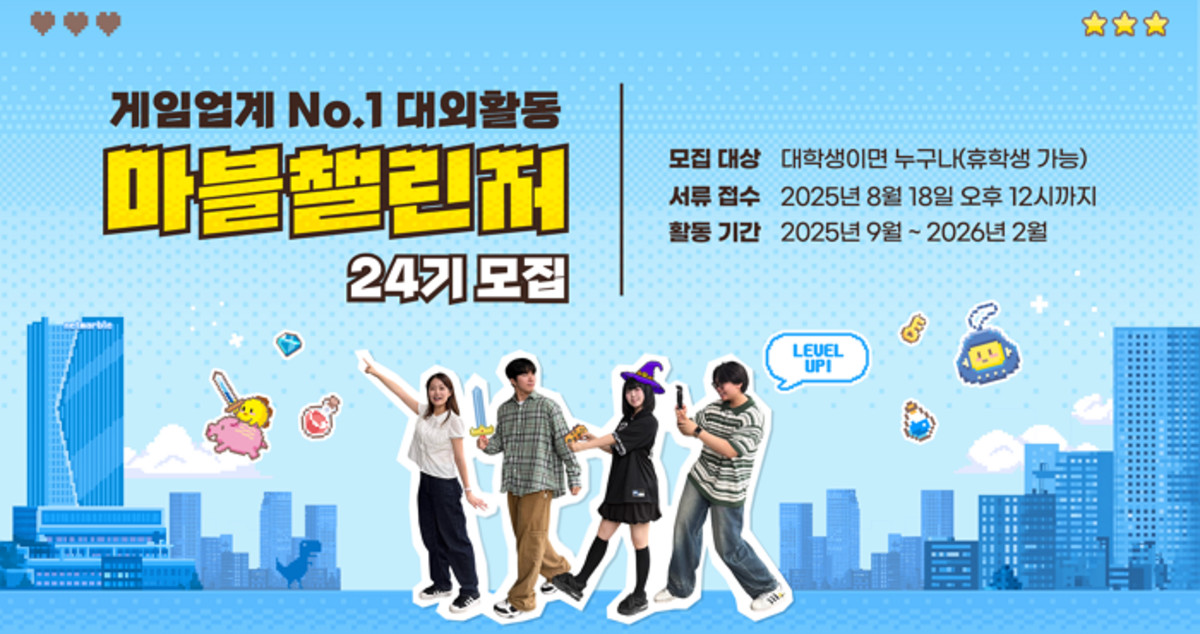 넷마블이 게임업계를 대표하는 대학생 대외활동 프로그램 '마블챌린저' 24기 모집을 시작했습니다.