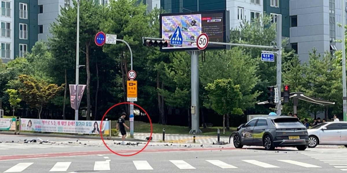 이날 A씨가 공개한 사진 속에는 처참한 사고 현장을 증명하듯 산산조각이 난 차량의 잔해들이 도로에 흩뿌려져 있었는데요. 그 중심에는 사고 현장을 누비는 신원 미상의 남성이 포착됐습니다.