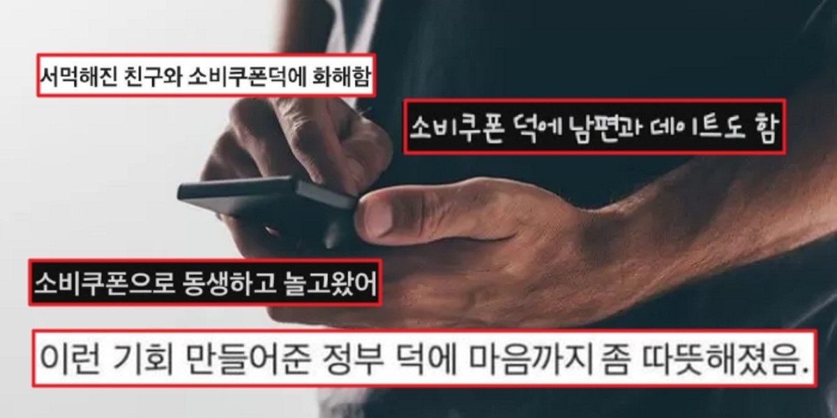 또 다른 글 '소비쿠폰 덕에 남편과 데이트 함'에서는 "아이 낳고부터 서로 지치고 대화도 줄었는데 소비쿠폰 받은 김에 아이 친정에 맡기고 오랜만에 둘이 외출했다"면서 "작은 쿠폰 하나가 우리 부부 사이 다시 이어줬다"고 감사를 표했습니다.