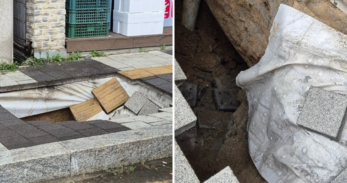 이번에 발생한 땅꺼짐 구덩이는 깊이 2.5m, 넓이 5㎡ 규모로 확인되었는데요, 일반 성인의 키보다 더 깊은 구덩이가 갑자기 생겼다는 점에서 큰 인명 피해로 이어질 수 있었던 위험한 상황이었습니다.