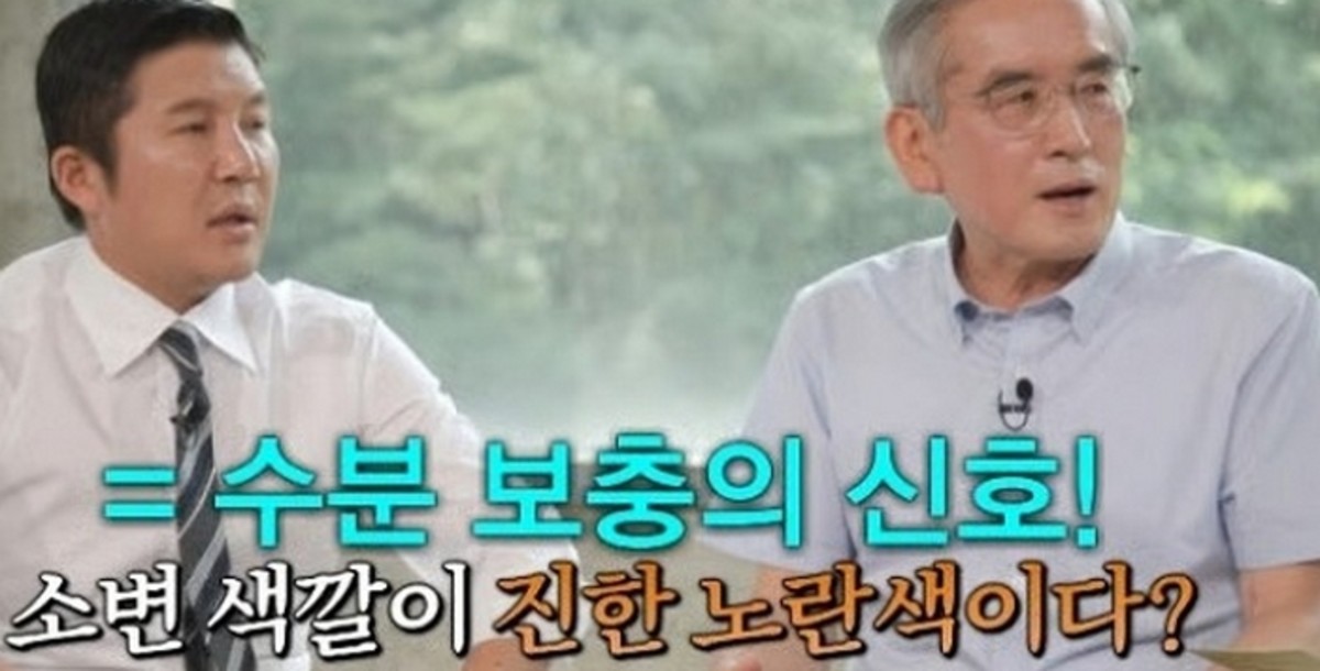 "우리 몸에는 기가 막히게 우리 몸에 필요한 양의 물을 정확하게 먹을 수 있도록 우리한테 알려주는 방법이 있다"라며 소변 색깔을 통해 수분 상태를 확인할 수 있다고 설명했습니다. 소변 색깔이 짙은 노란색이면 수분이 부족한 상태라는 것입니다.