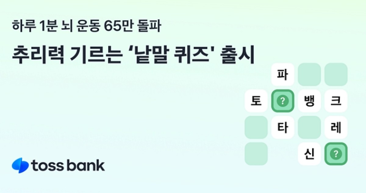 8일 토스뱅크는 시니어 고객들이 특히 선호하는 '낱말 퀴즈' 형식의 추리력 게임을 새롭게 추가했다고 발표했습니다.