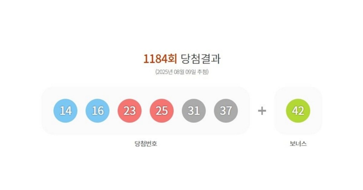 제1184회 로또 1등 당첨 번호는 '14·16·23·25·31·37'이며, 보너스 번호는 '42'로 발표되었습니다. 이번 회차에서는 총 15명이 1등에 당첨되어 각각 19억 1065만 5600원의 상금을 받게 됩니다.