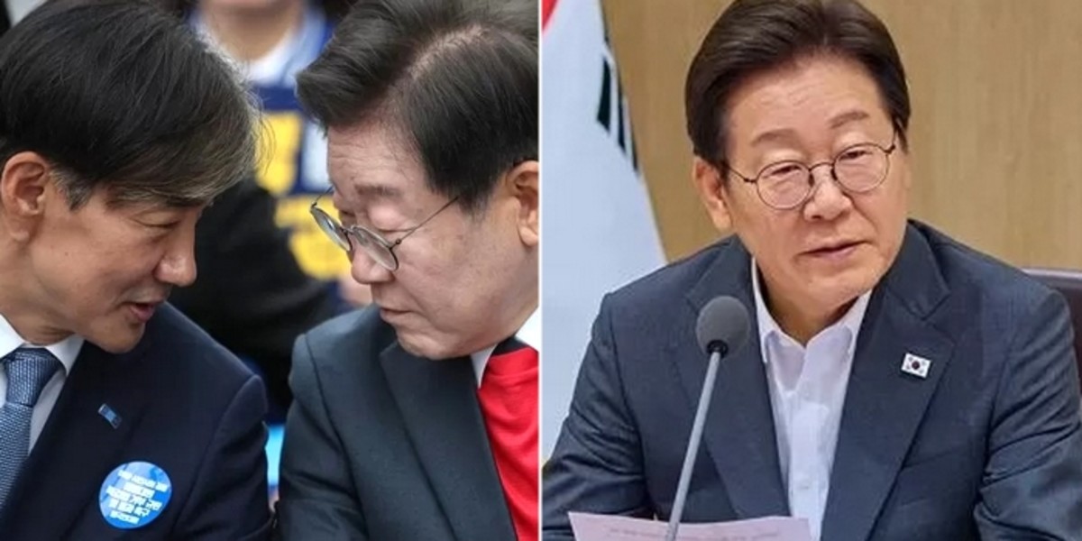 지난해 5월 25일, 이재명 대통령(당시 더불어민주당 대표)와 조국 조국혁신당 전 대표(당시 조국혁신당 대표)가 서울 중구 숭례문 인근에서 열린 범야당 및 시민사회 '채상병 특검법 거부 규탄 및 통과 촉구 범국민대회'에 참석해 대화하고 있다. / 뉴스1