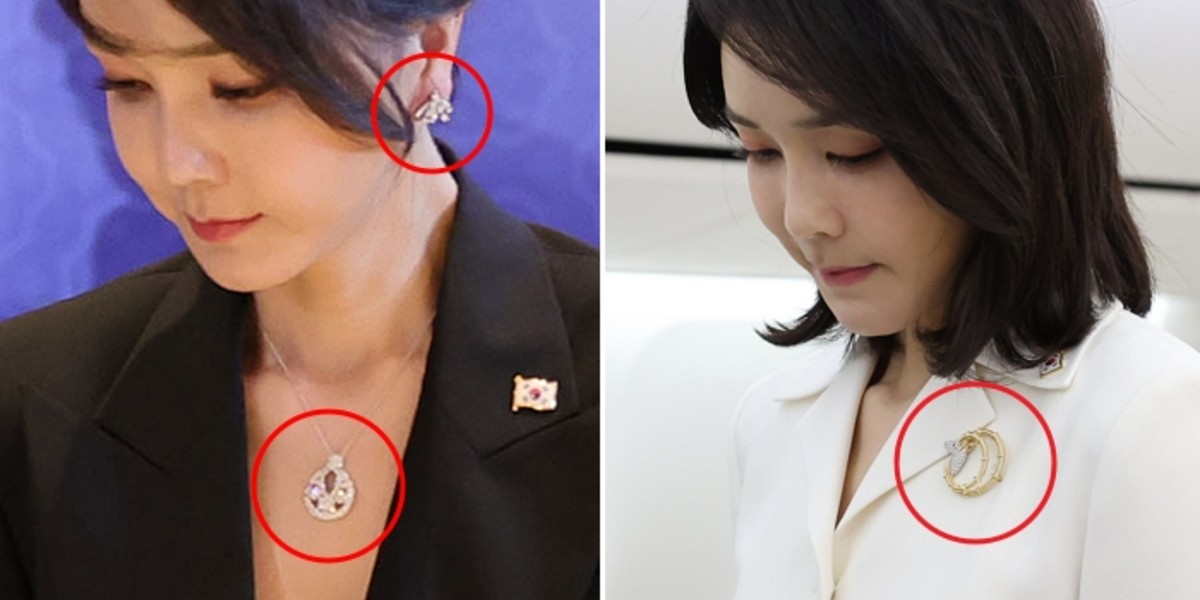SBS에 따르면 지난 2022년 북대서양조약기구 NATO 정상회의에 참석하기 위해 윤석열 전 대통령의 스페인 순방에 동행한 김 여사의 왼쪽 옷깃에서 해당 브로치가 발견됐습니다.