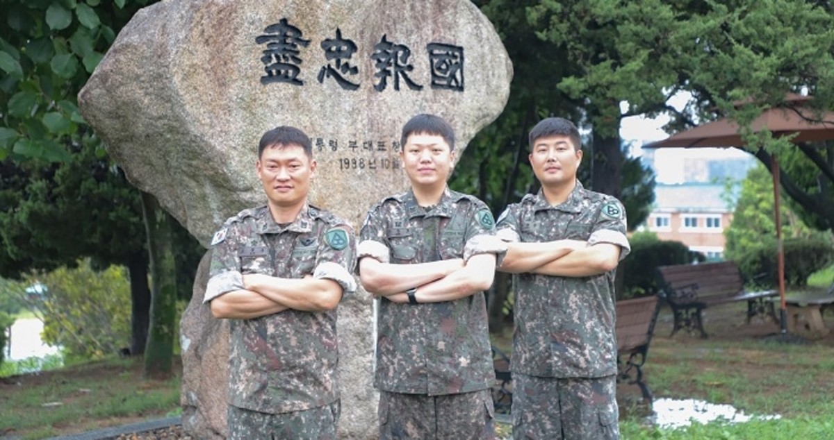 집중호우 속에서 시민들을 구조한 60사단 조경여단 부사관들. 왼쪽부터 상사 고진수, 중사 이강호, 상사 박현준. / 육군60사단 제공