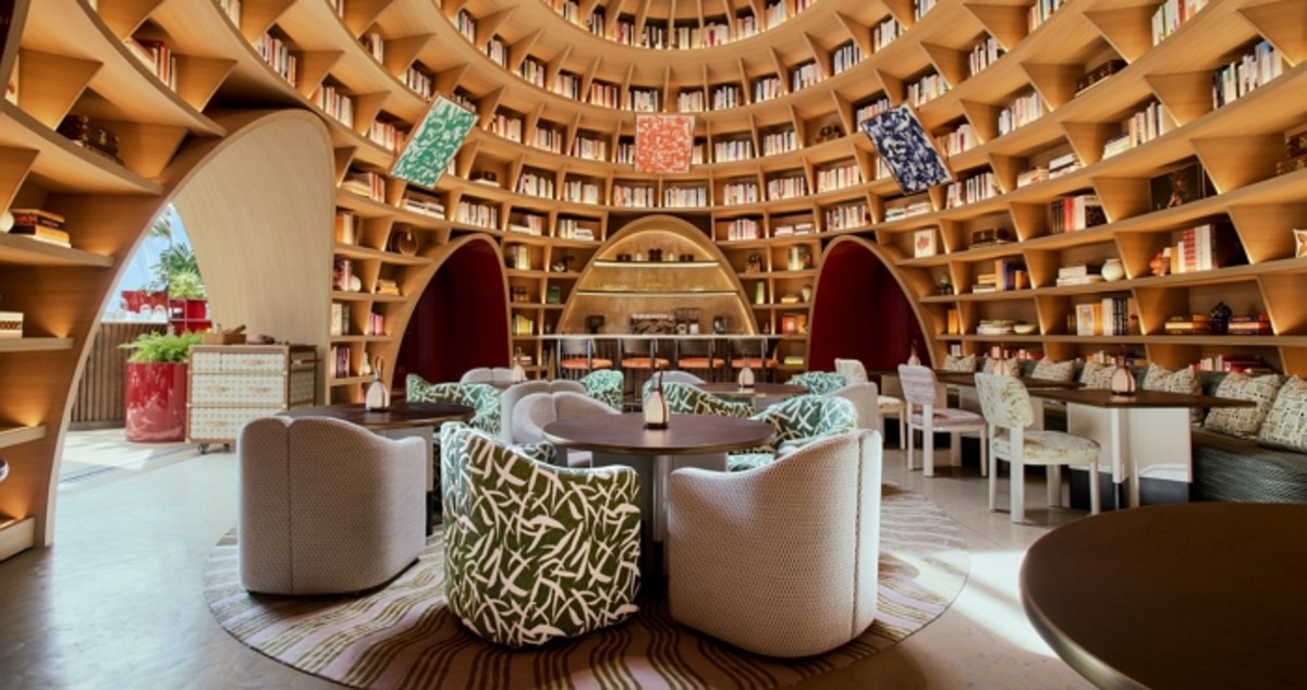 '르 카페 루이 비통'의 내부는 방문객들이 문화적 영감을 느낄 수 있도록 생동감 있게 디자인되었습니다.
