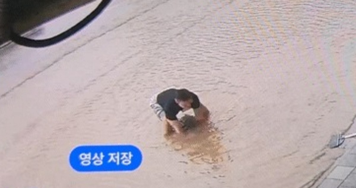 폭우 속 맨홀 번쩍 들어올린 용감한 시민