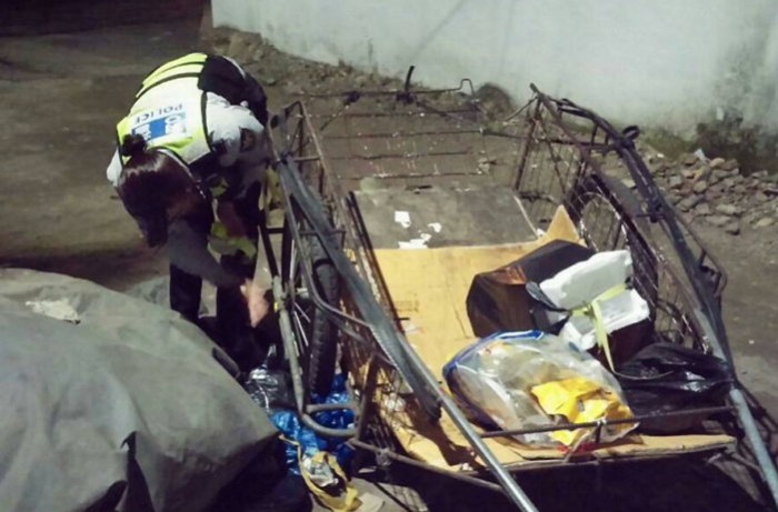 사진 속에는 한 여경이 재활용품 등이 담긴 남루한 리어카 옆에 쪼그리고 앉아 뭔가를 붙이는 모습이 담겨 있다.
