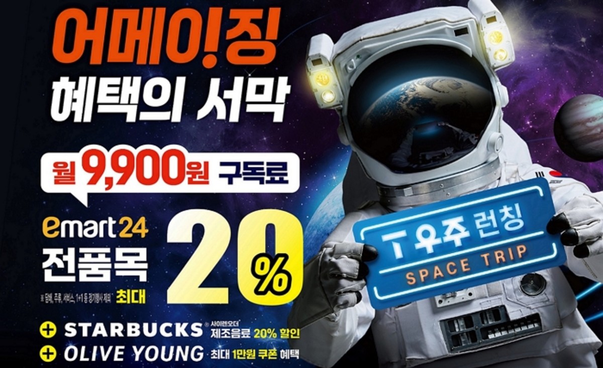 월 9,900원의 구독료로 고객들은 이마트24에서 상품 구매 시 최대 20% 할인, 스타벅스 사이렌오더 주문 시 제조 음료 20% 할인, 올리브영 온·오프라인에서 1만원 상당의 혜택을 받을 수 있습니다.