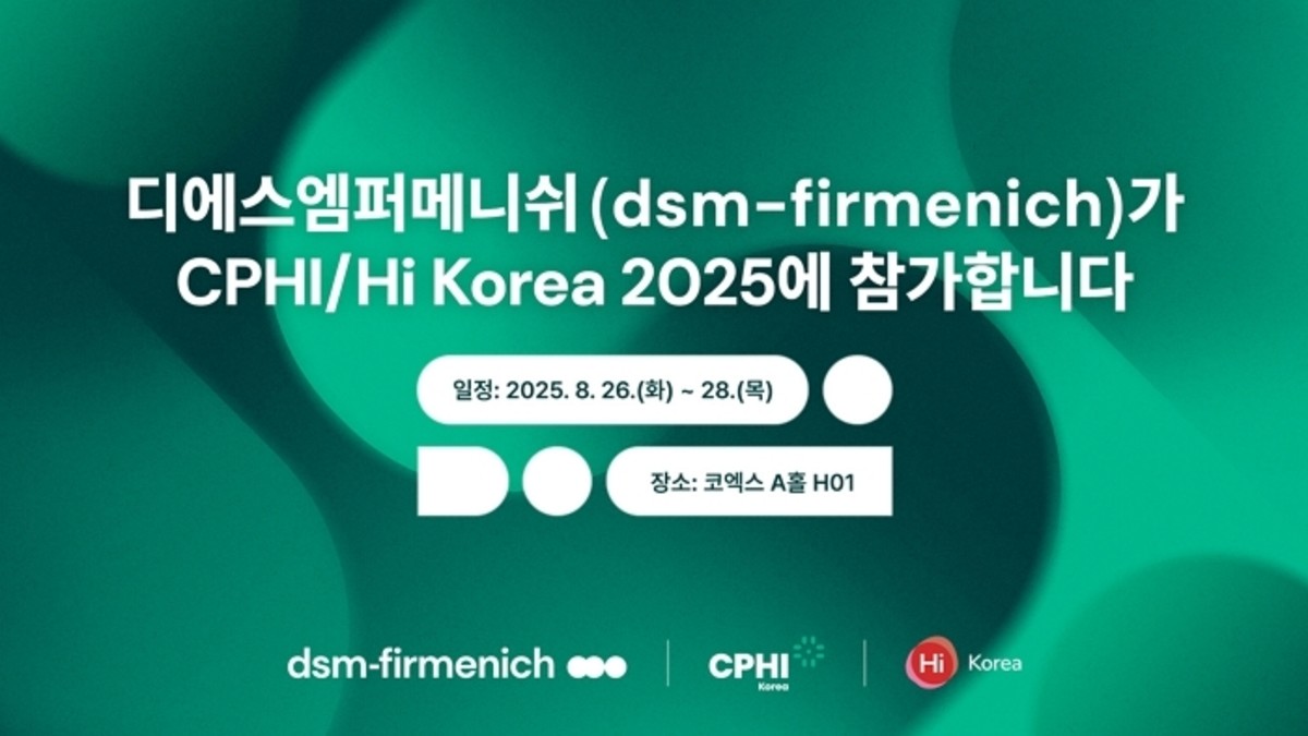 글로벌 영양·건강·뷰티 기업 디에스엠퍼메니쉬가 오는 8월 26일부터 28일까지 서울 코엑스에서 개최되는 '세계 제약·바이오·건강기능식품 산업 전시회 CPHI/Hi Korea 2025'에 참가합니다.