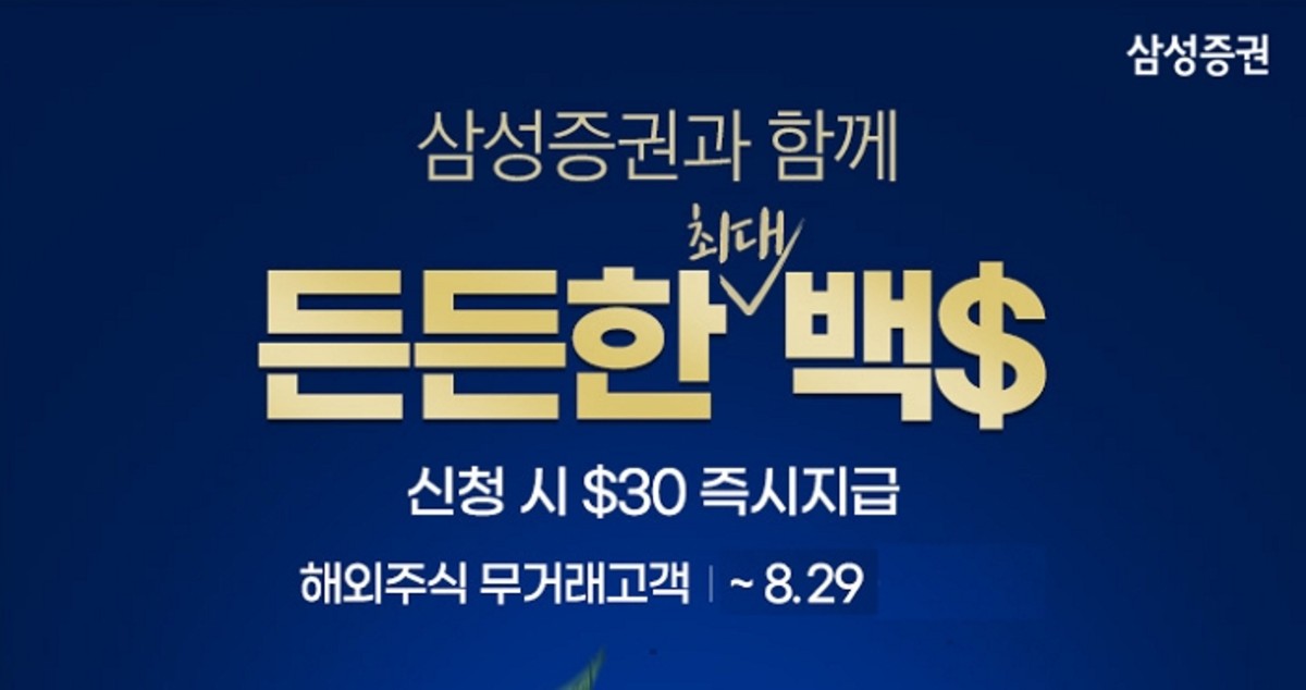 삼성증권, 해외주식 첫 거래 고객에게 최대 100달러 지원 이벤트 실시