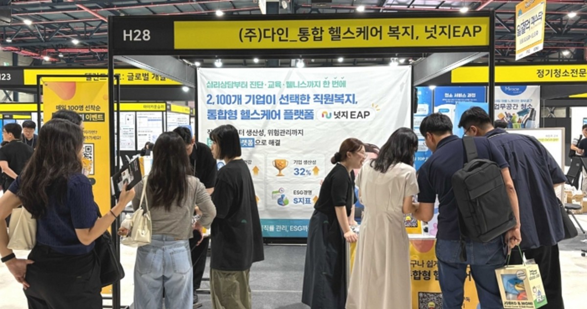 다인은 이번 행사에서 심리상담, 진단, 교육, 웰니스까지 아우르는 통합형 헬스케어 플랫폼 '넛지EAP'를 소개했습니다.