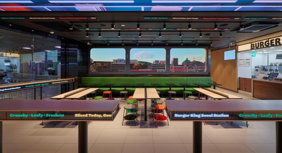 새롭게 단장한 버거킹 서울역점은 위치적 특성을 세심하게 반영한 공간 구성이 돋보입니다.