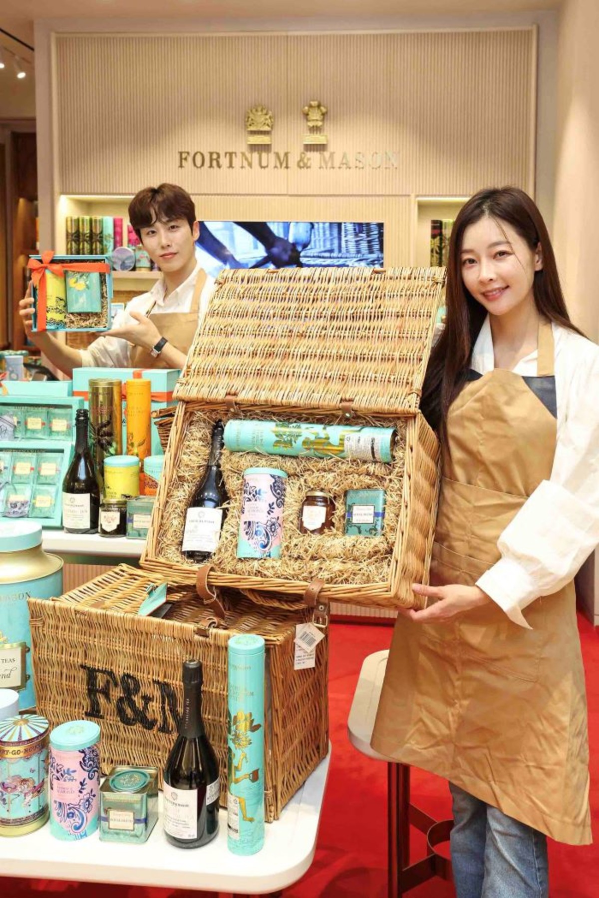 신세계백화점이 추석 명절을 앞두고 영국의 대표적인 홍차 브랜드 '포트넘앤메이슨'의 햄퍼 세트를 선보이며 고급 선물 시장을 공략하고 있습니다. 이번에 출시된 햄퍼 세트는 뚜껑이 있는 바구니 형태의 패키지에 다양한 티 제품과 비스킷 등을 담아 선물용으로 제작되었습니다.