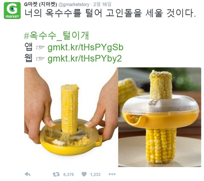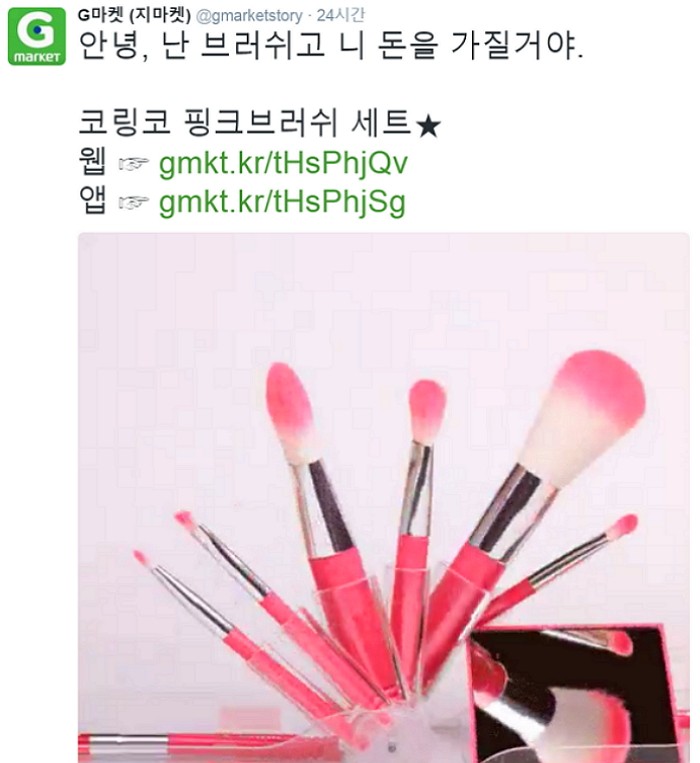 지마켓 관리자는 '안녕, 난 브러쉬고 니 돈을 가질 거야', '잘 들어, 여기서 한 면발도 못 나간다', '너의 옥수수를 털어 고인돌을 세울 것이다' 등 판매 중인 상품에 적당한 멘트를 던져 그냥 넘어갈 제품임에도 눈길을 가게하고 있다.