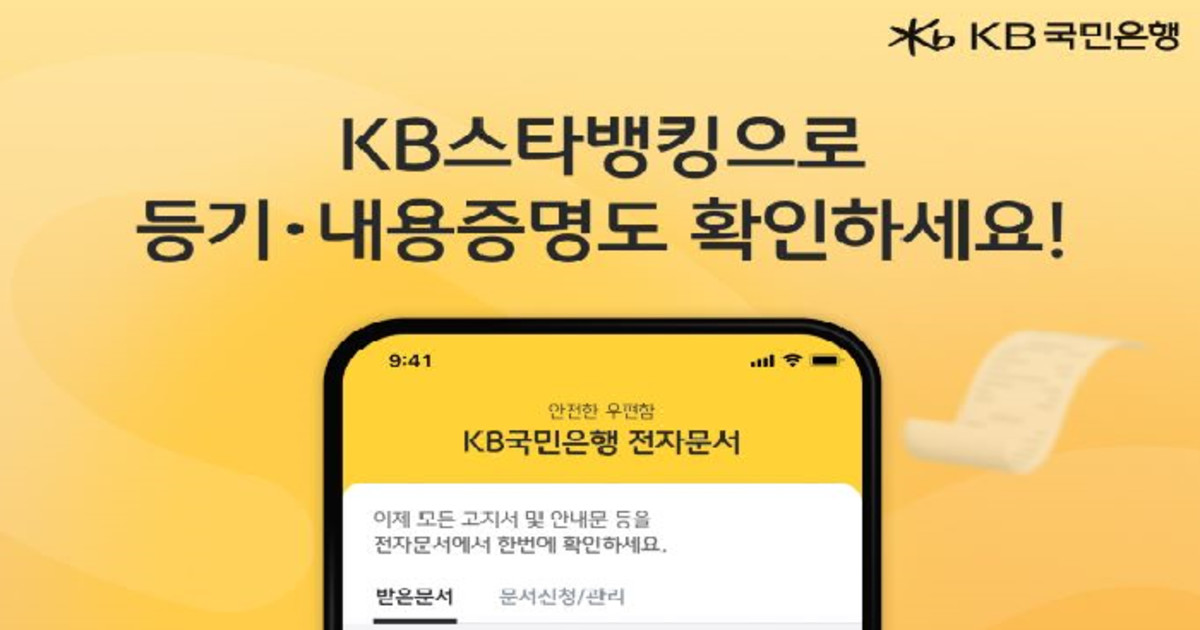KB국민은행이 등기우편과 내용증명 등 종이우편으로 발송하던 안내문을 KB스타뱅킹 앱에서 확인할 수 있는 서비스를 시작했습니다. 이번 서비스는 과학기술정보통신부의 ICT규제샌드박스 실증특례를 통해 전자문서법상 효력을 국내 최초로 인정받은 결과물입니다.