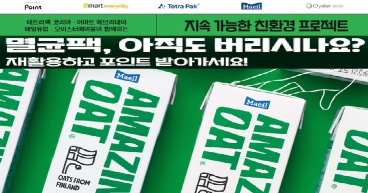 매일유업의 식물성 식품 브랜드 '어메이징 오트'가 테트라팩 코리아, 이마트 에브리데이와 함께 멸균팩 분리배출을 장려하는 친환경 이벤트를 진행합니다.