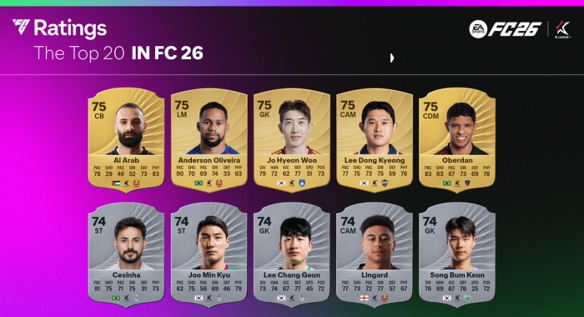 EA, FC 26 K리그 선수 레이팅 TOP 20 공개