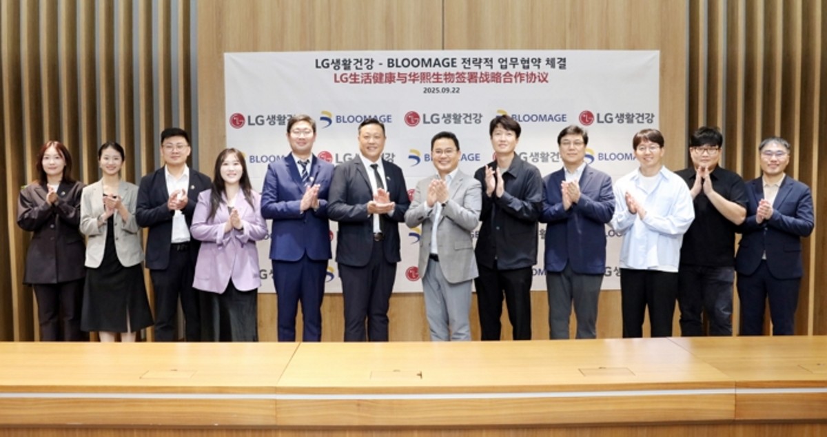 이날 협약식에는 LG생활건강 강내규 최고기술책임자(CTO)와 블루메이지 조우송앤((邹松岩·Songyan Zou) 부사장 등 양사 관계자들이 참석했습니다.
