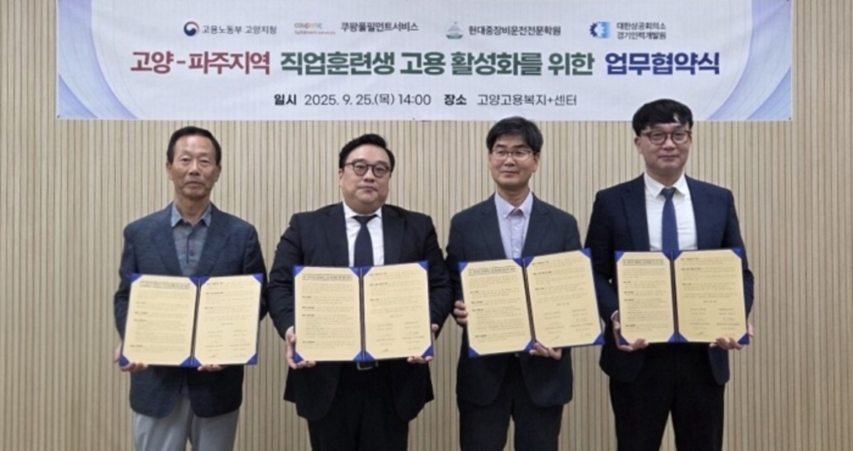 CFS는 26일, 고용노동부 고양지청, 현대중장비운전전문학원, 대한상공회의소 경기인력개발원과 '고양·파주지역 직업훈련생의 고용 활성화를 위한 업무협약'을 체결했다고 발표했습니다.