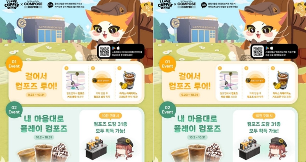 첫 번째 이벤트인 '걸어서 컴포즈 투어'는 오는 10월 31일까지 진행되며, 실제 컴포즈커피 매장을 방문하면 GPS 기술을 활용해 게임 내 월드맵에 컴포즈커피 아이콘이 표시됩니다.