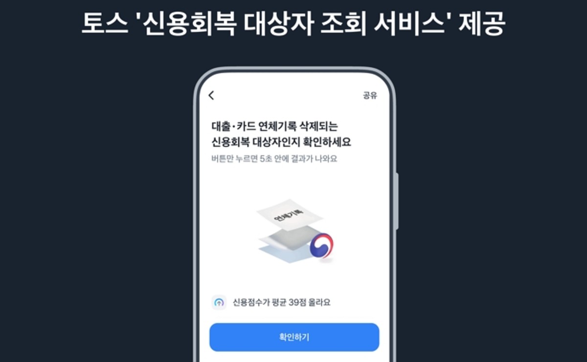 토스가 정부의 신용회복 지원조치 대상자들을 위한 새로운 서비스를 선보였습니다.