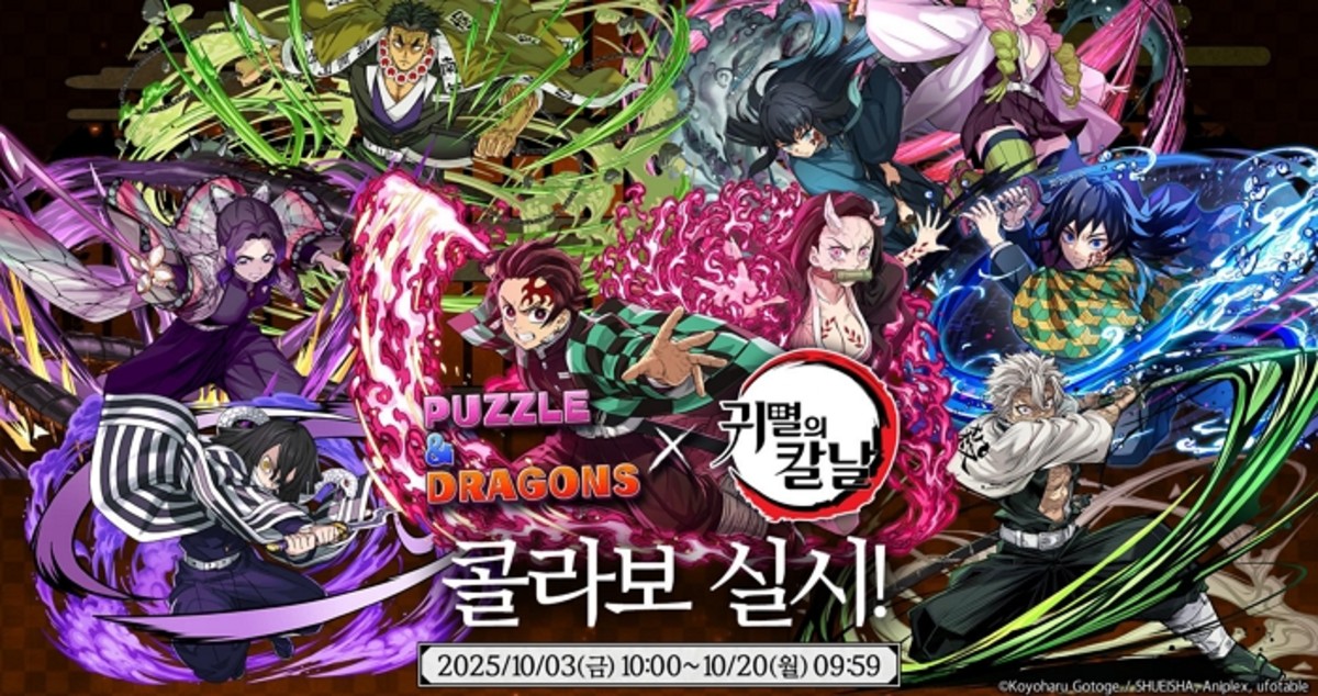 모바일 퍼즐 액션게임 '퍼즐앤드래곤'이 인기 애니메이션 '귀멸의 칼날'과 세 번째 콜라보레이션을 실시합니다.