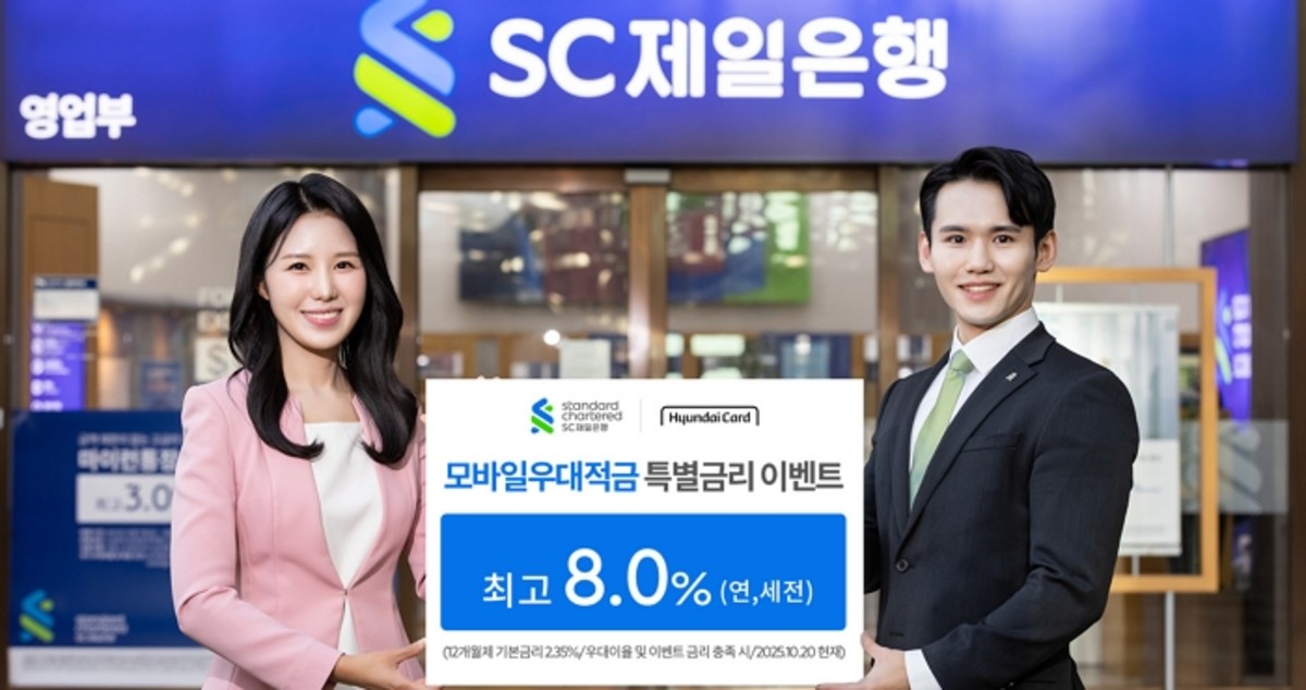 SC제일은행이 현대카드와의 협업을 통해 모바일우대적금 가입 고객을 대상으로 한 특별금리 이벤트를 20일부터 올해 말까지 진행한다고 발표했습니다.