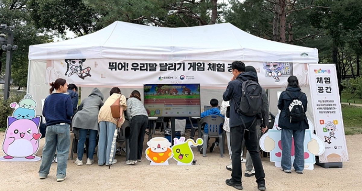 관람객들이 직접 '뛰어! 우리말 달리기' 게임을 체험하며 문제를 풀어볼 수 있는 공간을 마련했으며, 선착순 100명에게는 '헬로메이플' 기념품을 증정하는 이벤트도 함께 진행했습니다.