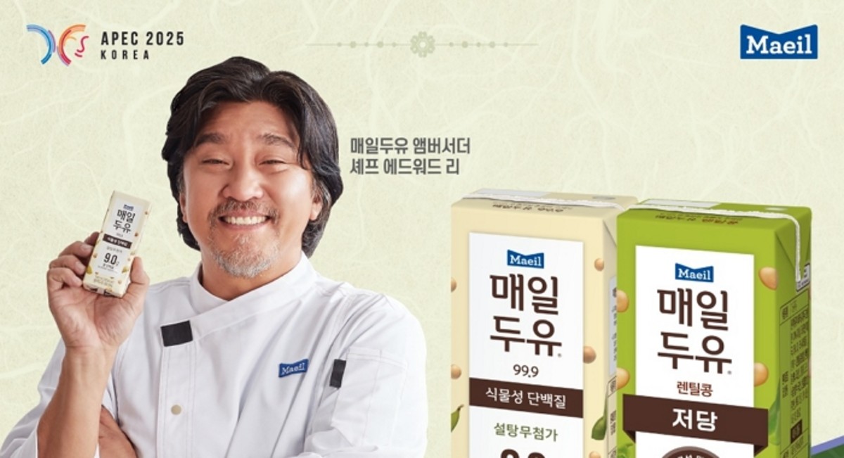매일유업이 APEC 2025 KOREA의 성공적인 개최를 응원하며, 매일두유 브랜드 앰버서더인 에드워드 리 셰프의 정상회의 만찬셰프 위촉을 기념하는 특별 온라인 기획전을 개최한다고 발표했습니다.