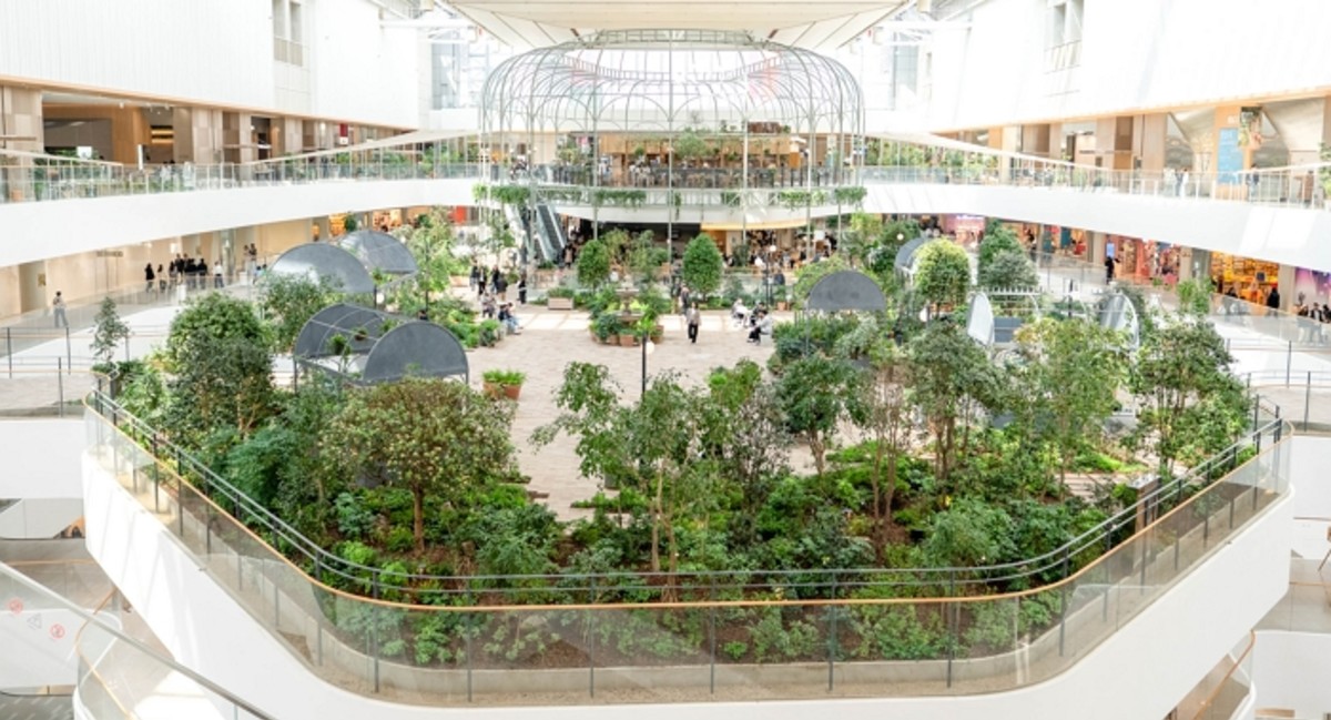 3,300㎡ 규모로 조성된 사운즈 포레스트에는 교목 7종 약 55그루를 포함해 관목류 및 지피 식물 50여 종이 식재되어 있습니다. 특히 '층고가 아파트 6층 높이인 20m에 달하며 자연 채광을 누릴 수 있어' 실내 공간임에도 불구하고 고객들에게 탁 트인 개방감을 제공합니다.