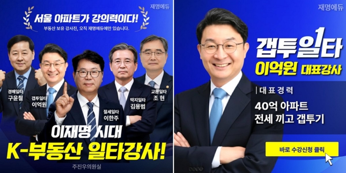 28일 주진우 의원은 자신의 소셜미디어에 "'재명에듀' 부동산 일타강사들을 소개한다"며 "부동산 일타강사들로 어떻게 집값을 잡나"라는 글과 함께 합성 이미지를 게재했습니다.