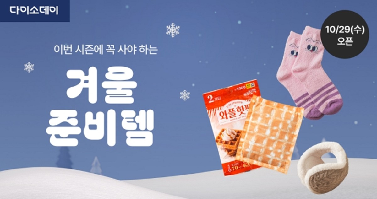 29일 다이소몰은 'Daiso-DAY 겨울 준비템' 행사를 10월 29일 오전 9시부터 오는 11월 2일 오후 6시까지 개최한다고 발표했습니다.