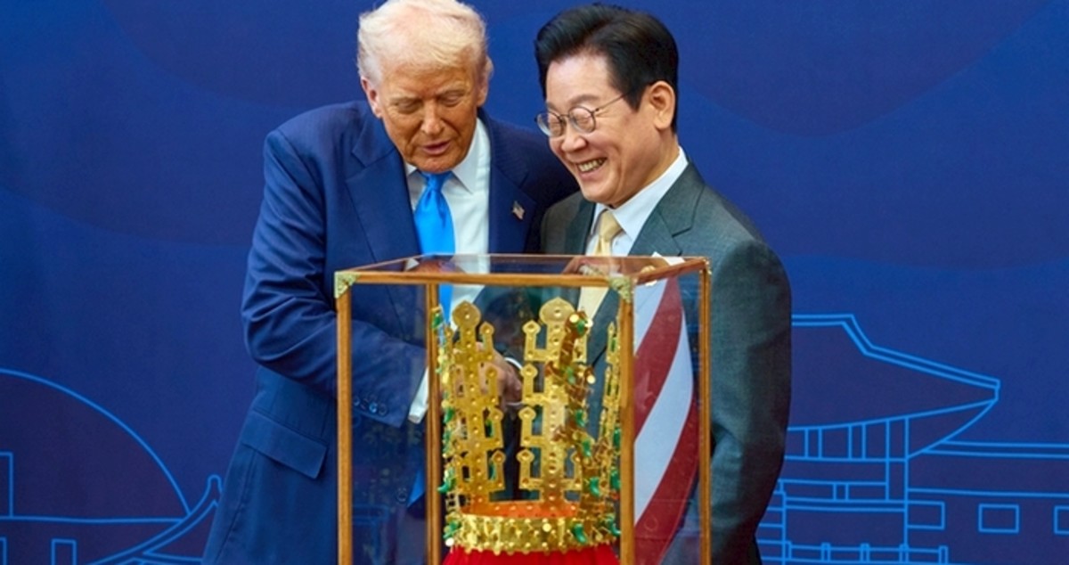 President Lee Jae Myung gifts @POTUS a Cheonmachong gold crown on his visit to South Korea pic.twitter.com/bxyMibIhGJ