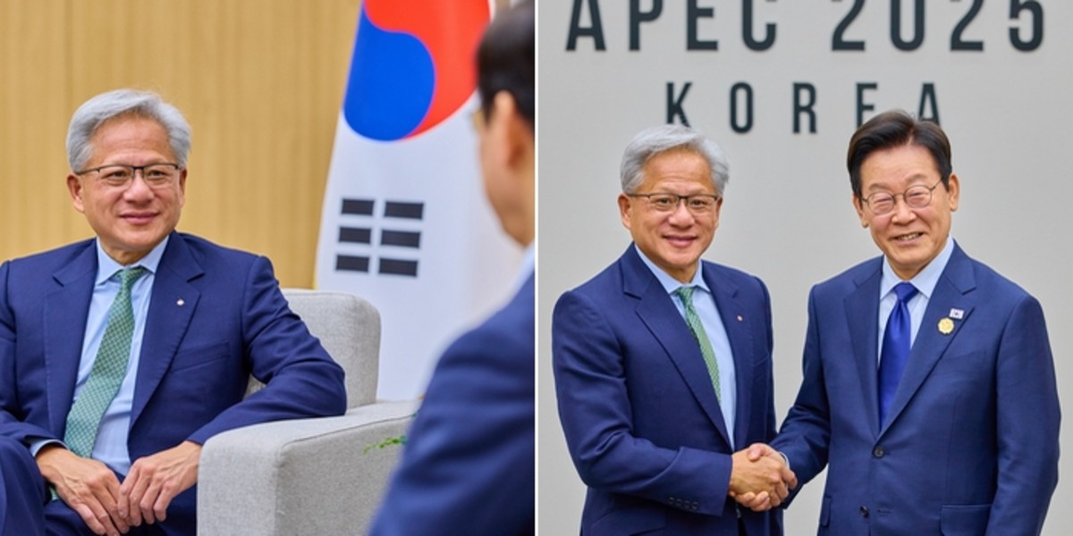 이재명 대통령과 젠슨 황 엔비디아 최고경영자(CEO)가 APEC 정상회의장에서 만났습니다.