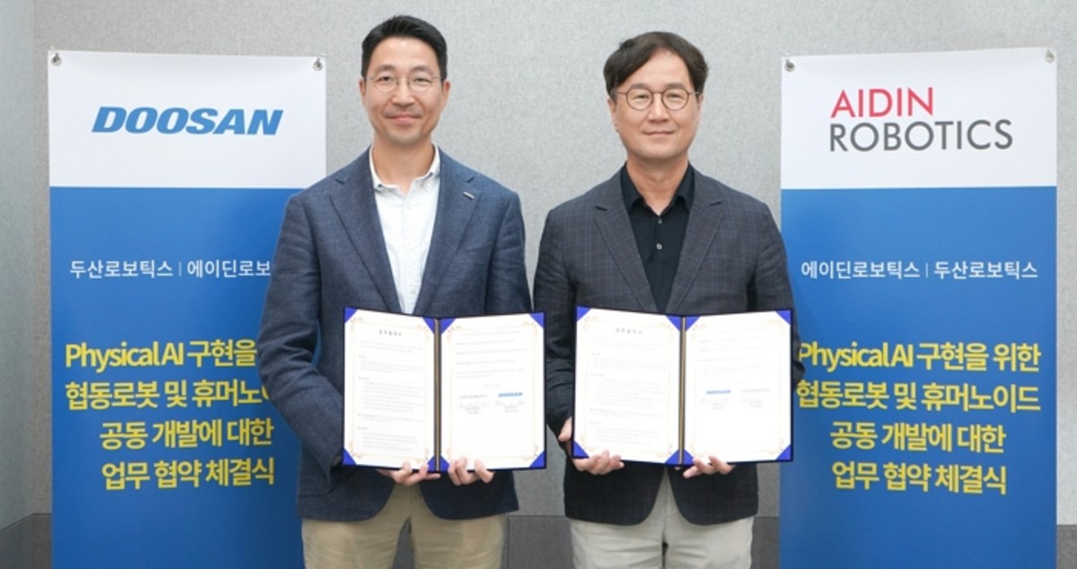 3일 두산로보틸스는 에이딘로보틱스와 '피지컬 AI 구현을 위한 로봇 및 휴머노이드 공동개발' 업무협약을 체결했다고 발표했습니다.