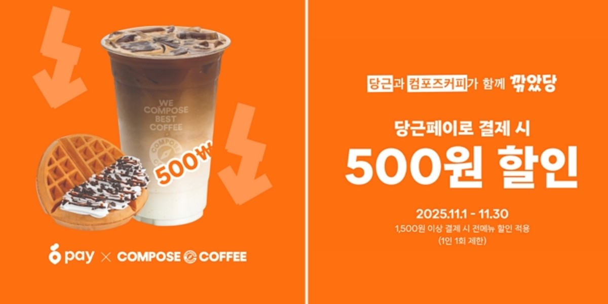 컴포즈커피가 당근페이와 손잡고 11월 한 달간 특별 할인 혜택을 선보입니다.