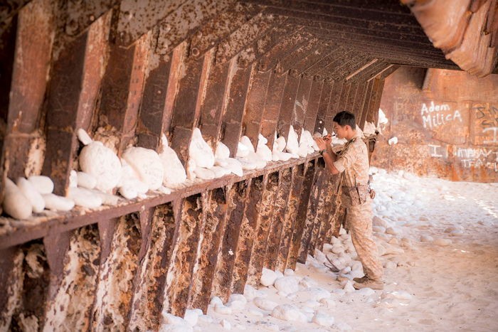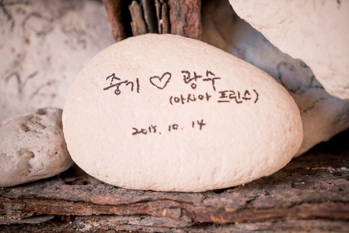 공개된 사진에는 진지한 표정으로 돌멩이에 무언가를 적고 있는 송중기의 모습이 담겨 있다.