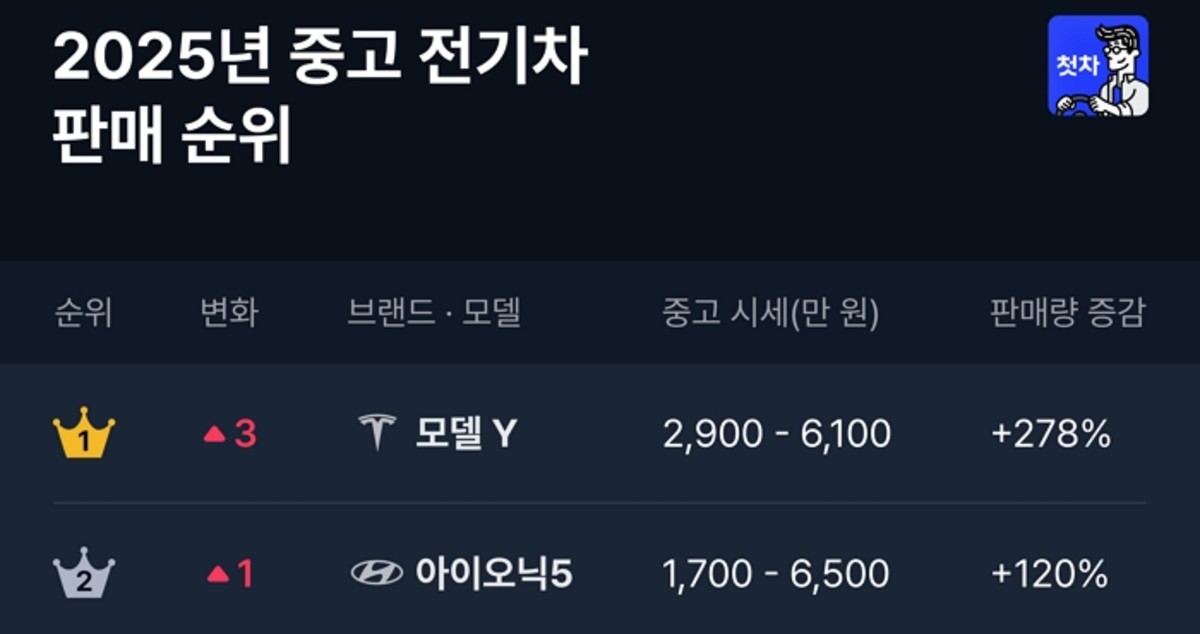 첫차 데이터에 따르면, 모델 Y의 중고 거래량은 전년 대비 약 2.8배 증가를 보였으며, 2025년 중고 전기차 전체 거래량 비중에서 가장 큰 상승폭을 기록했습니다.