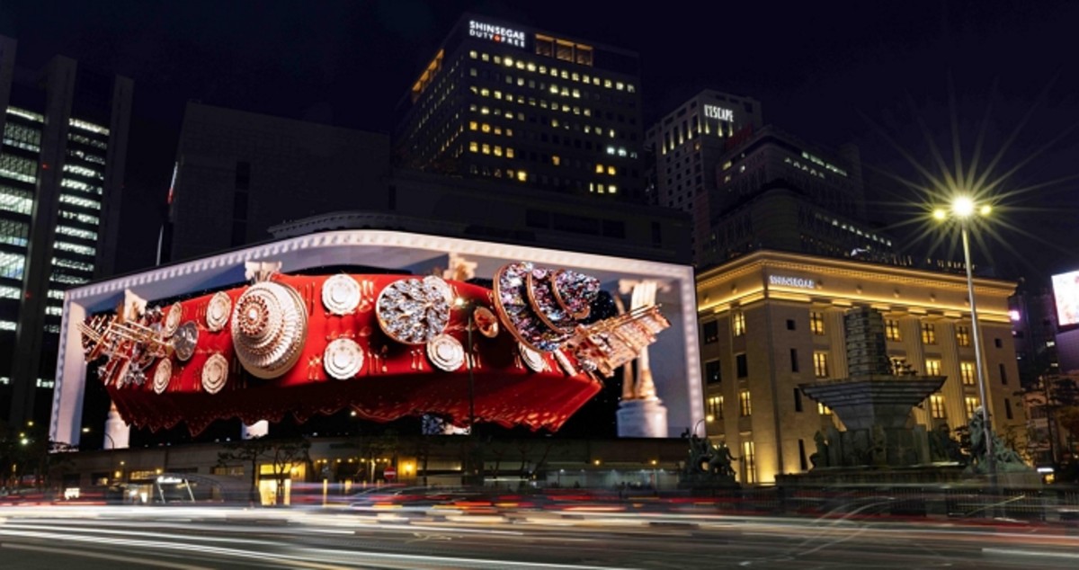 이 화려한 야외 미디어 아트와 함께 신세계백화점 각 지점은 '빛의 향연'으로 꾸며집니다.
