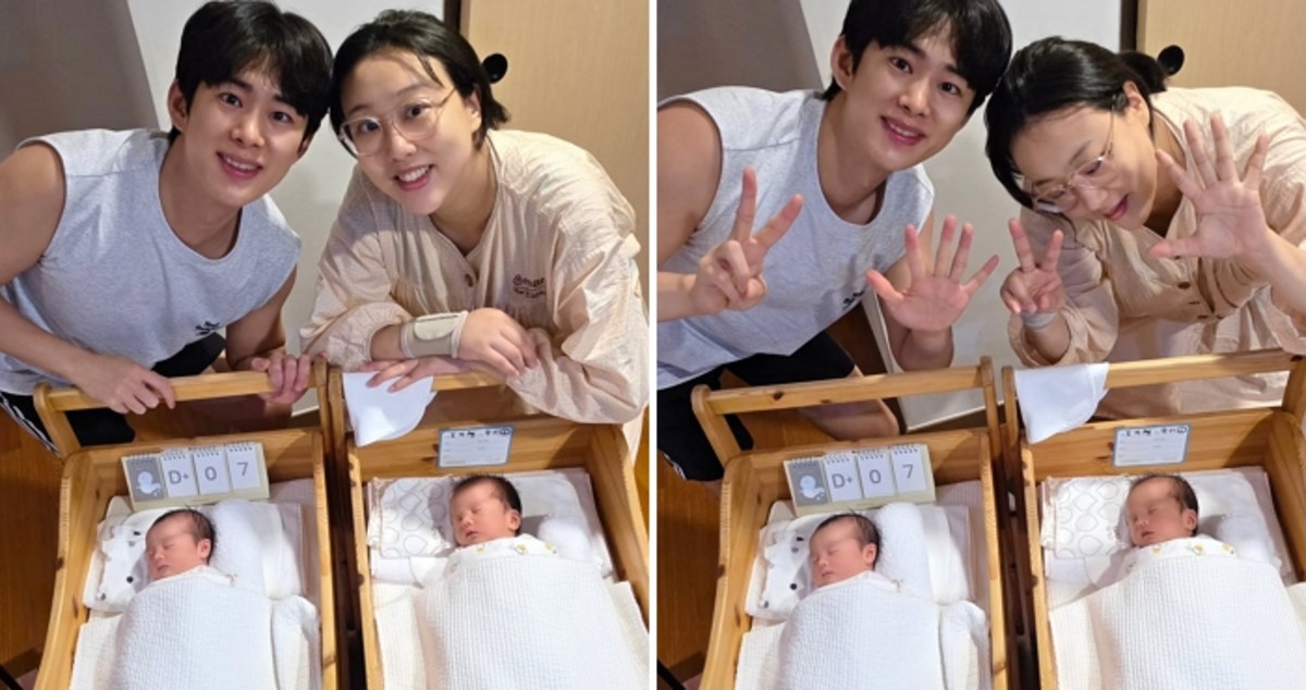 공개된 사진에는 생후 7일된 쌍둥이 아기들의 머리맡에서 카메라를 바라보고 있는 부부의 모습이 담겨 있어 보는 이들에게 깊은 감동을 전했습니다.