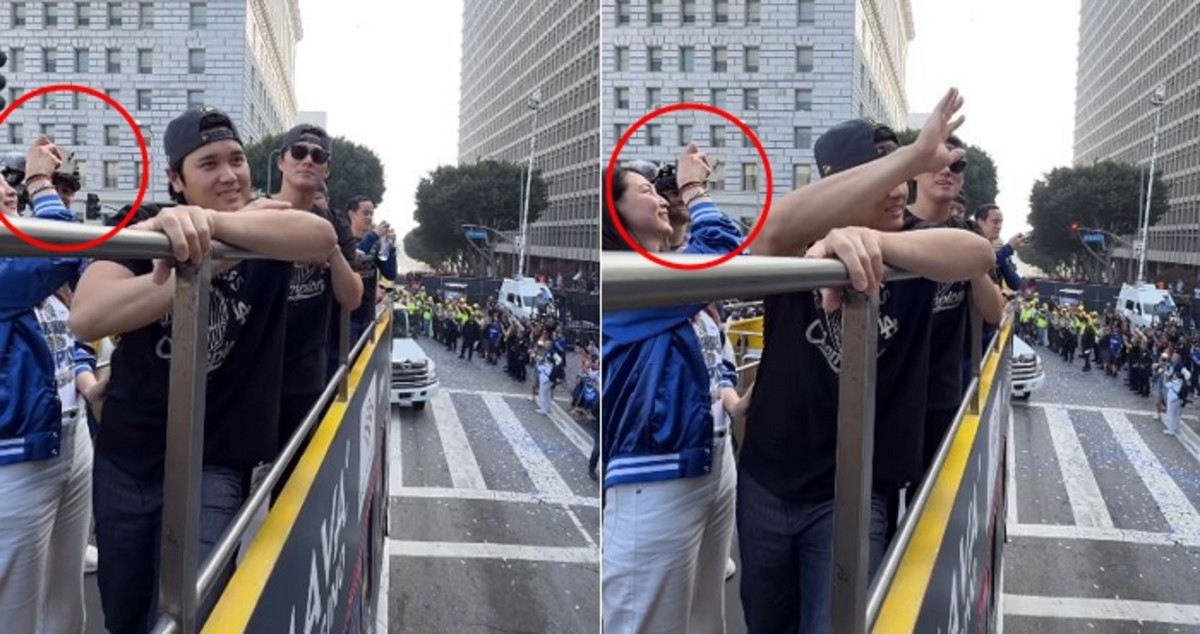 LA 다저스의 월드시리즈 우승 퍼레이드에서 오타니 쇼헤이의 아내 다나카 마미코가 사용하는 구형 스마트폰이 큰 관심을 끌었습니다.